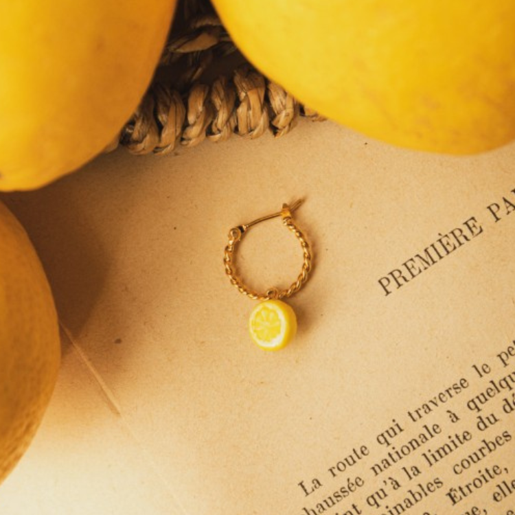 在酸甜的檸檬上,不單設計完整的外皮,同時也設計出切片後的檸檬,生動鮮豔的色彩,讓檸檬也增添了些俏皮感。
