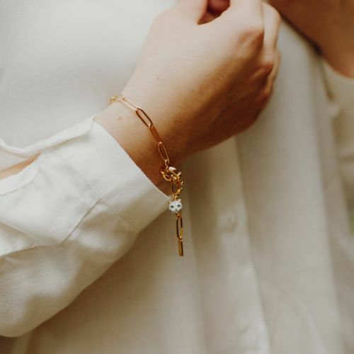 手繪白瓷吊墜搭配黃銅鍍金扣環設計,讓你發揮創意,DIY成手鍊、耳環、項鍊等飾品。