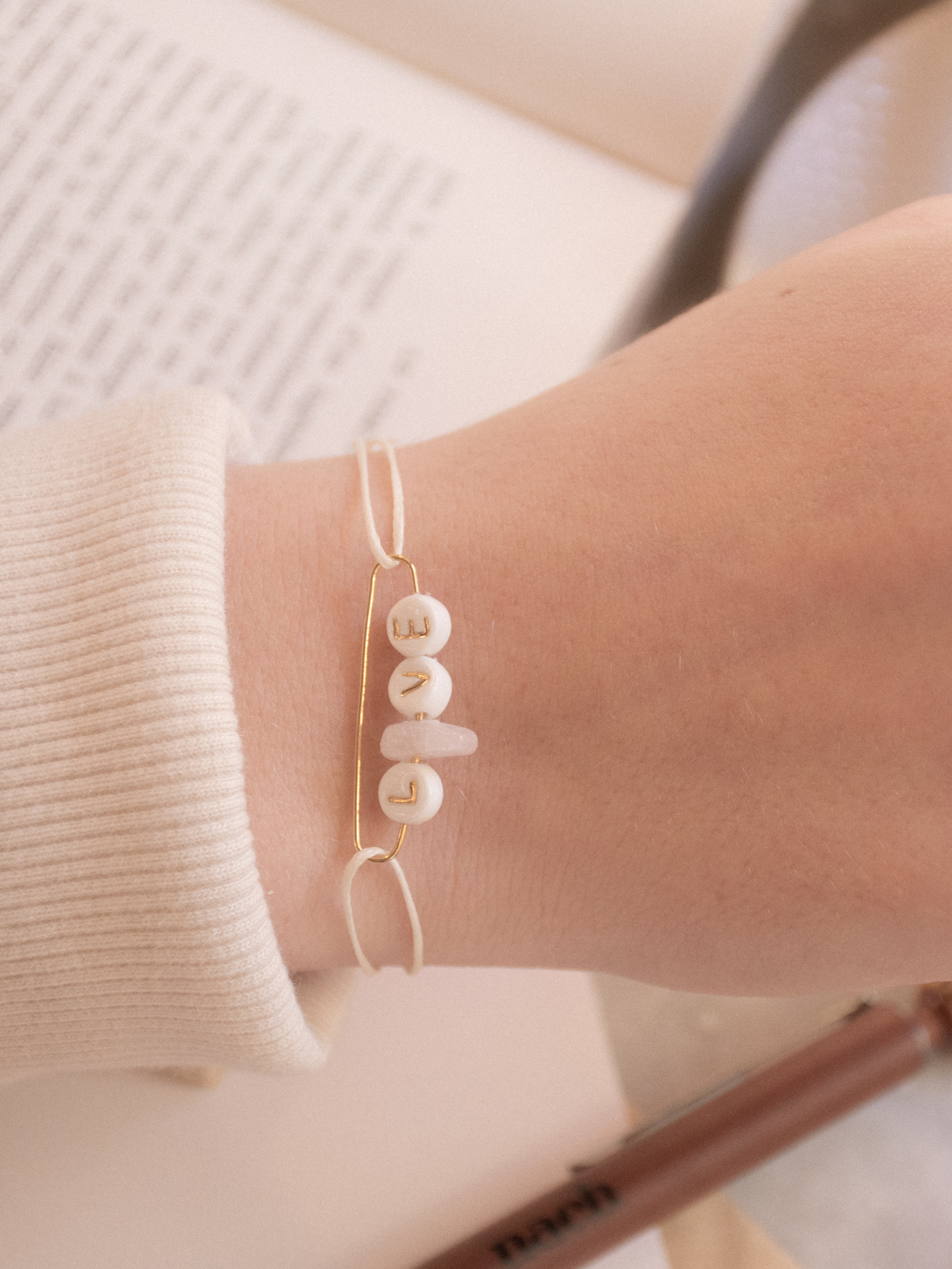 材質:黃銅鍍24K金(無鎳、抗敏)、100%手繪瓷製、尺寸可調節