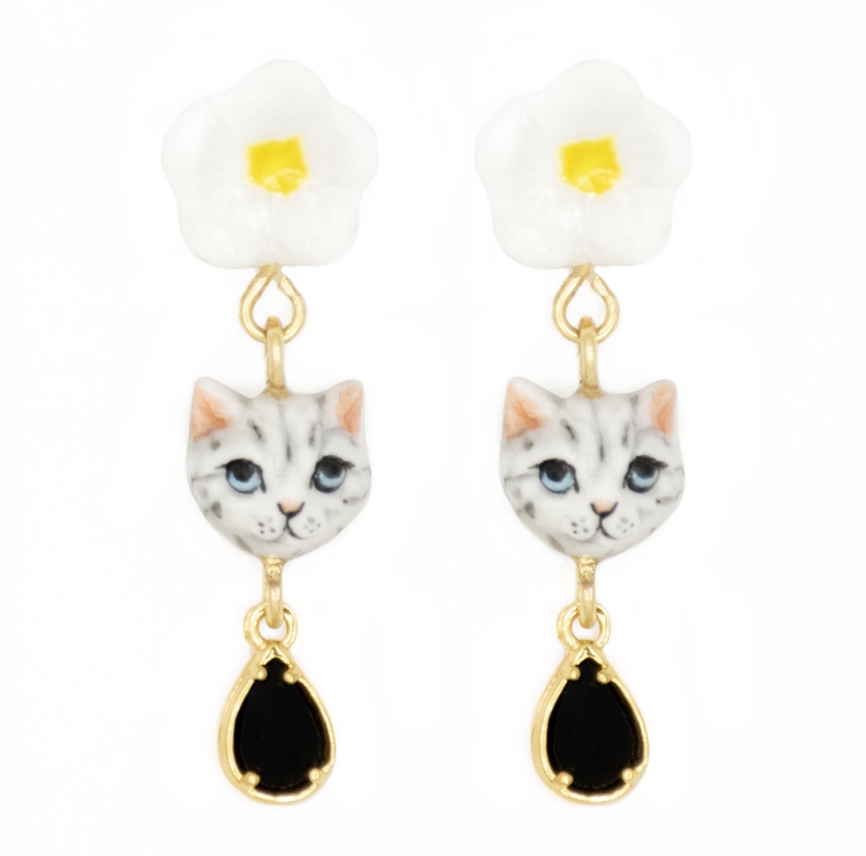 花、貓咪採用白瓷手繪製成,並由、貓咪、寶石往下排列垂墜式的造型設計,讓整體更擁有少女氣息,盡顯都會女性的優雅高貴。