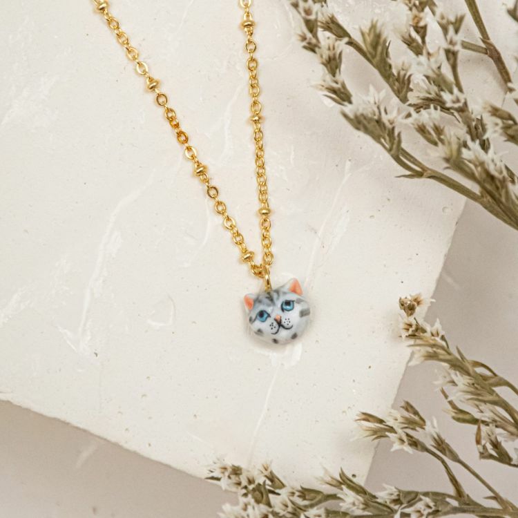 貓咪採用白瓷手繪,細膩的筆觸搭配精準的用色,刻畫栩栩如生的造型。