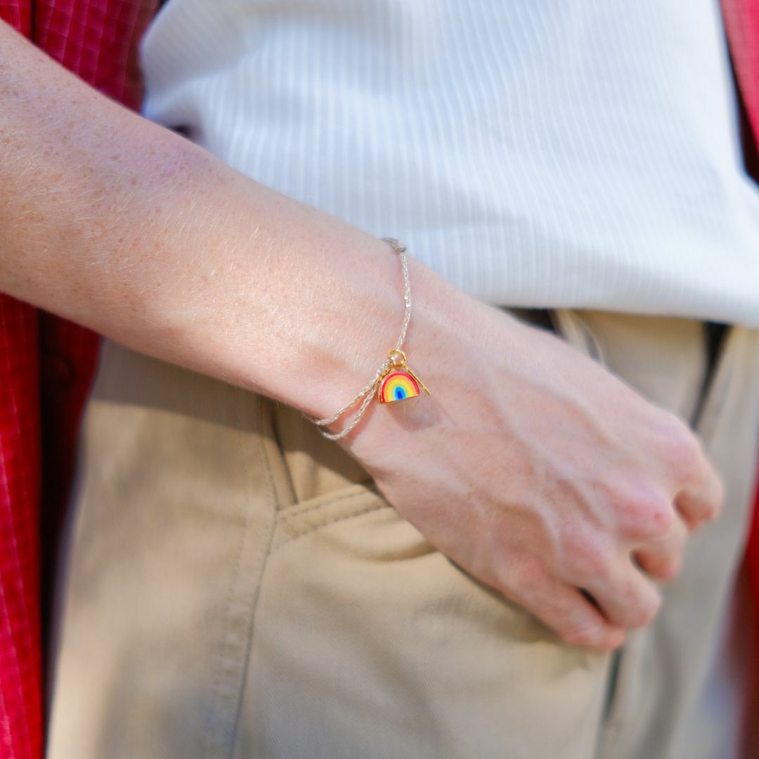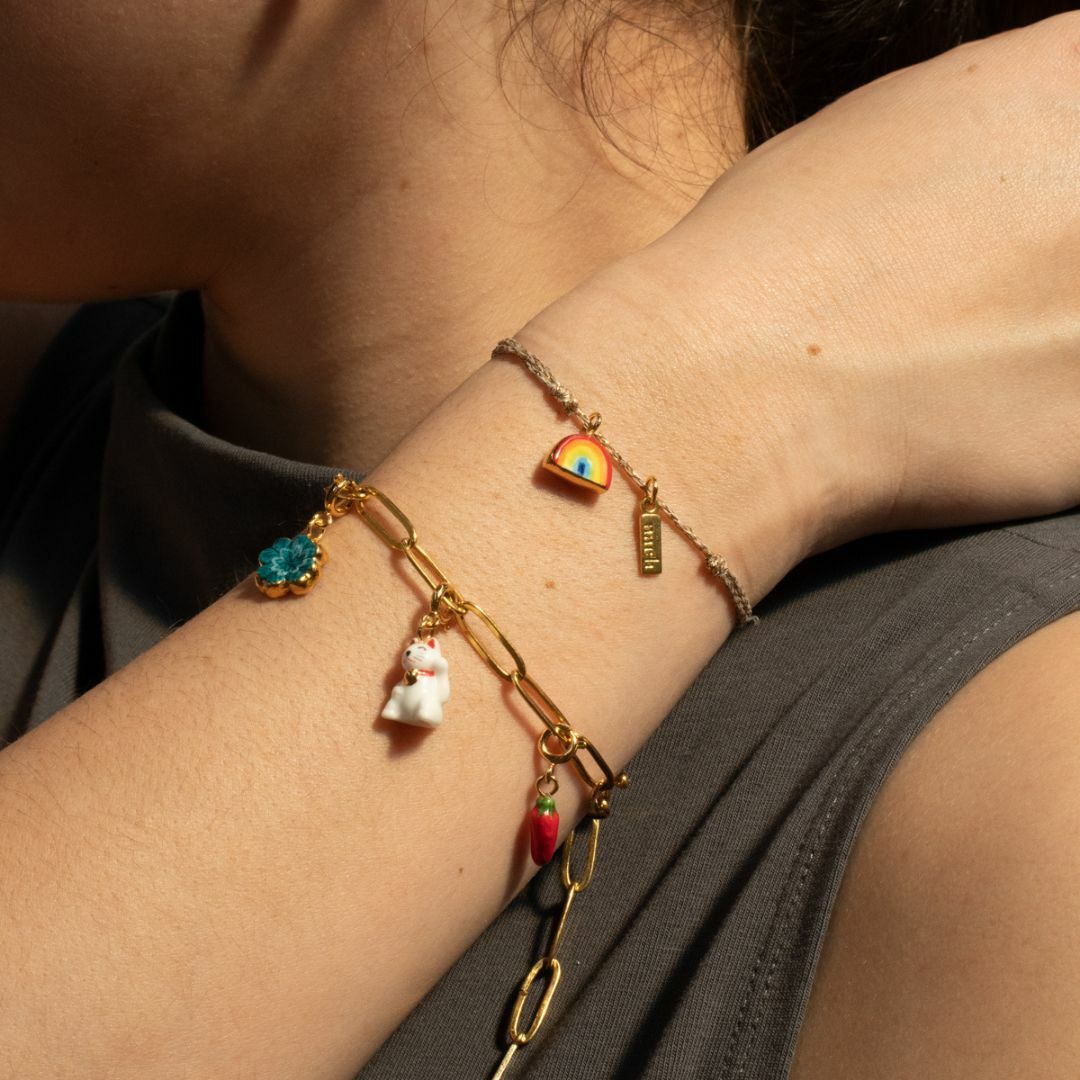 精緻的手工彩繪瓷製彩虹,垂墜於手腕,讓人愛不釋手,讓人戴上好運與好心情。