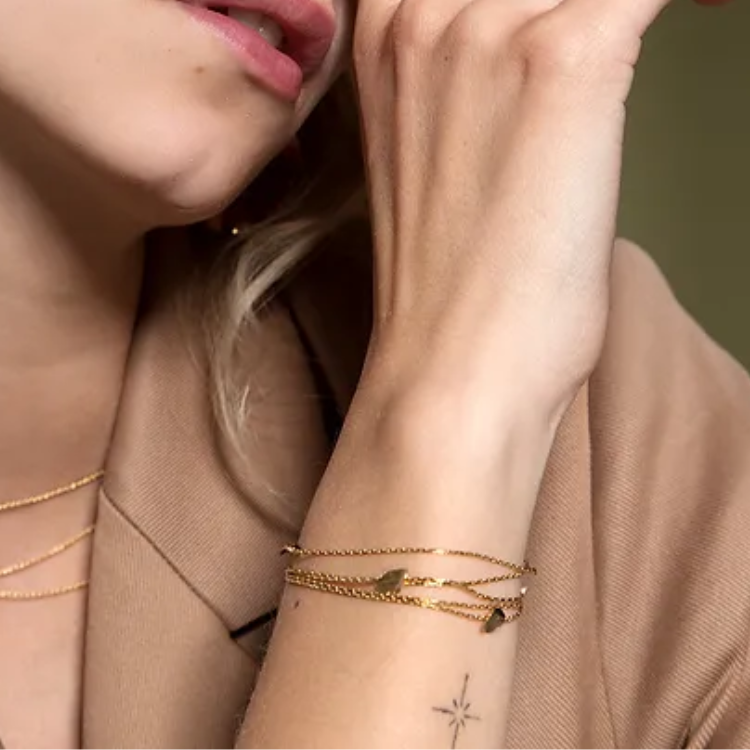 本款手鍊結合五層鍊條,展現多層次的美感。